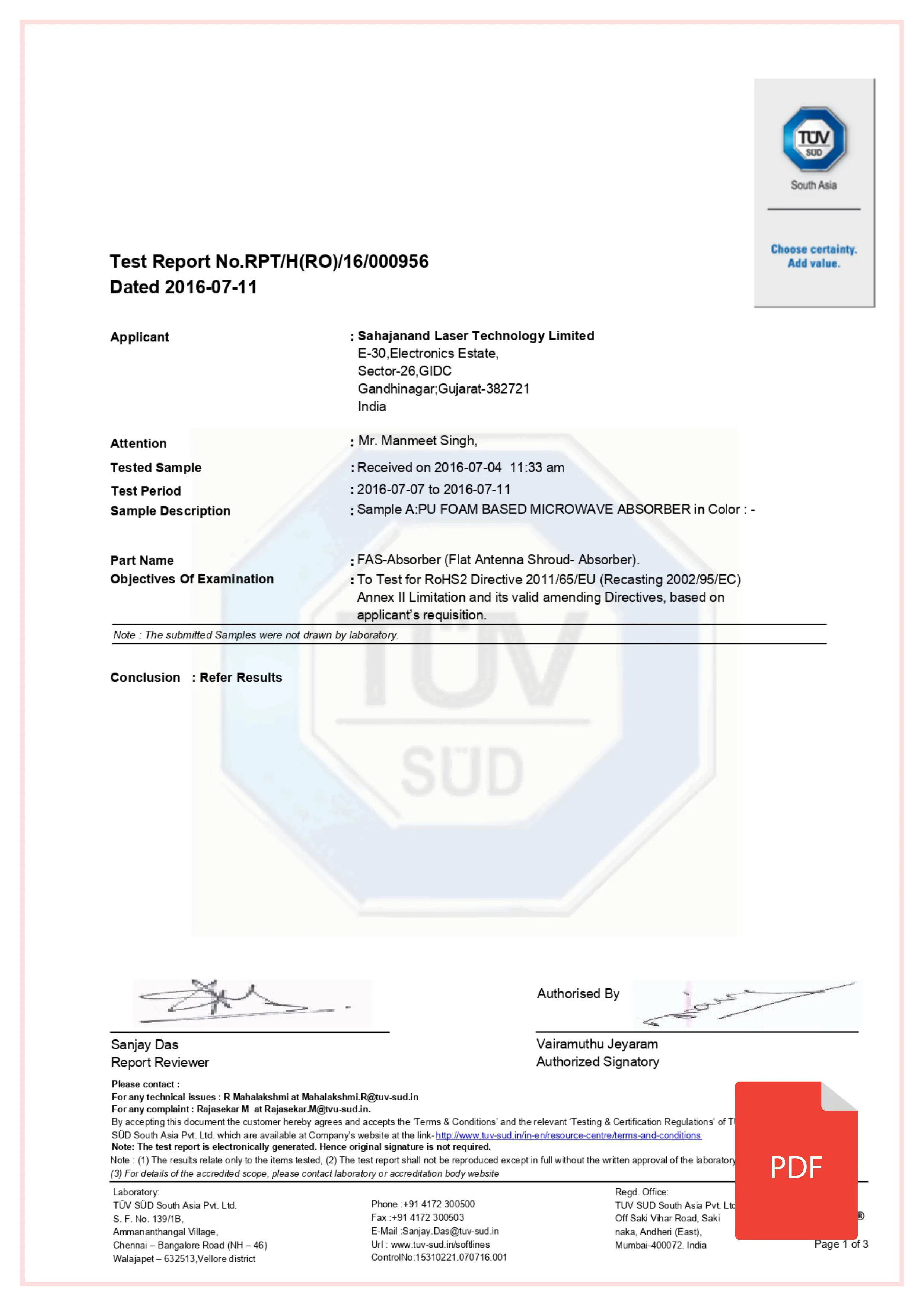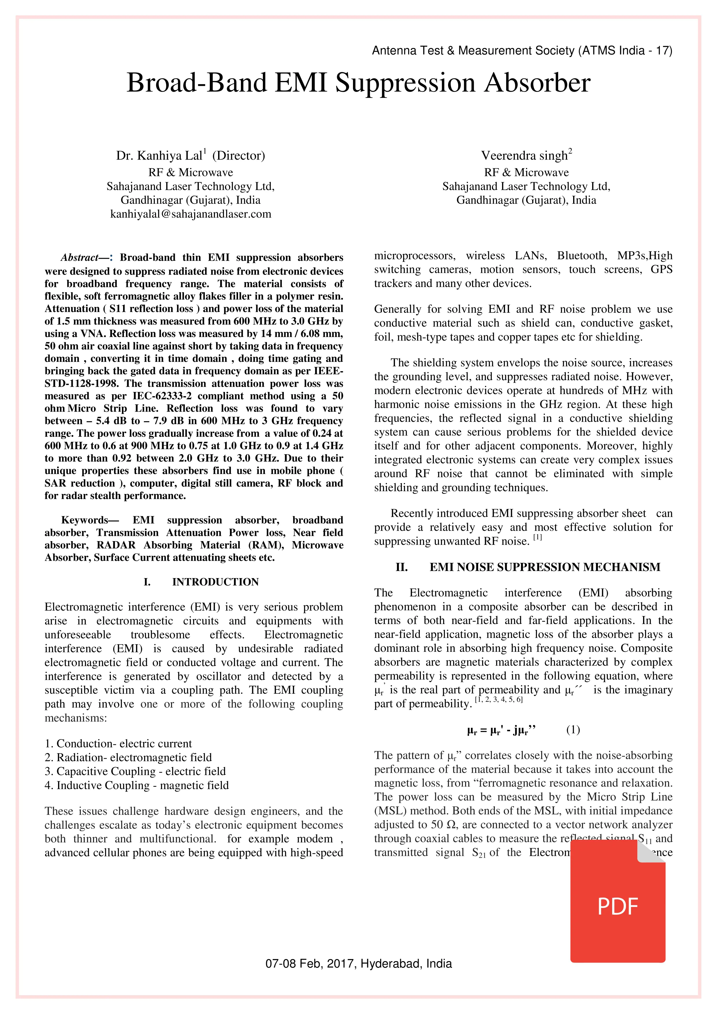 Manufacturer & Exporter of Microwave Absorbers, Radar Absorbent Materials, Shielded Anechoic Chambers, Dielectric Materials. Major customers include Aerospace & Electronic, Telecom, and Automotive Industries – A Complete Line of standard and customized Microwave Absorbers.